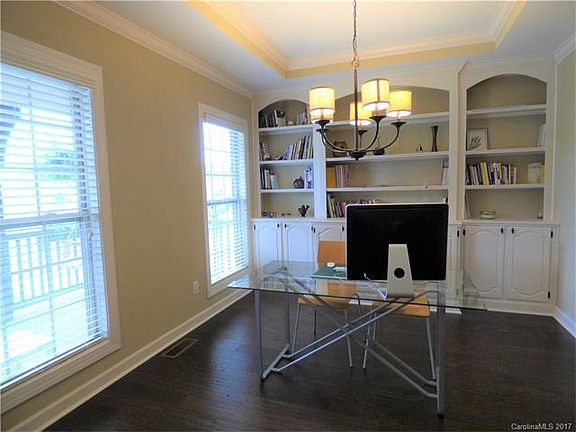 Stunning 5 bedroom home with amazing curb appeal! Breathtaking hardwood floors throughout the main, open layout perfect for entertaining and master on the main floor. Covered back deck with extended 2 tier apron deck perfect for backyard parties. Upstairs open loft area with 4 full bedrooms and huge bonus room/media room. Located in the Cox Mill school district. Recent home upgrades include 17x15 deck extension, power inlet for power generator, garage wall for home gym, epoxy floor for garage.