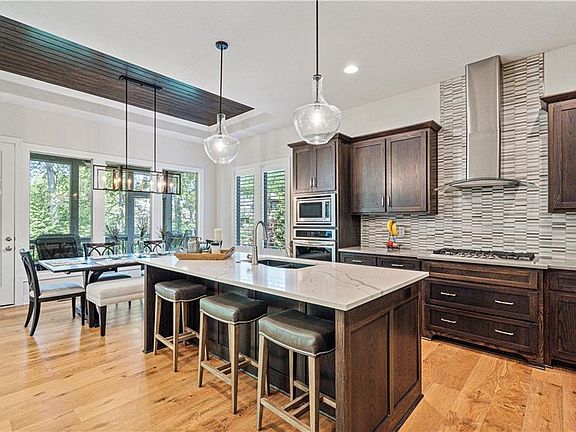 - Custom Cabinets, Kitchen Island, Pantry, Vaulted Ceiling(s), Walk-In Closet(s), Wet Bar