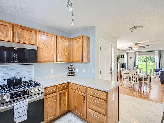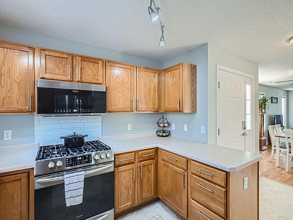 This end unit with large green spaces surrounding it is tucked into the end of the street. Seller has been busy with beautiful renovations including new carpet in main level bedrooms (Sept2024) along with a feature wall in the primary bedroom. Peek in the walk-in closet to find they added a walk through to the updated bathroom which is sporting new flooring, vanity and fixtures (Aug2024). Check out the main level laundry in the renovated mud room with great storage solutions. The kitchen has tons of counter space and all stainless steel appliances including a great gas range. Head downstairs to a gigantic family room that has two options for mounted TVs along with a built-in bar. The large third bedroom is directly across from a 3/4 bath downstairs as well. Furnace was replaced Nov2018 and A/C was replaced June2021. All the doors and trim on the main level were updated this year as well. There's nothing to do here but move in and enjoy the giant open space this end of the development location provides right out your back door on the walkout patio.