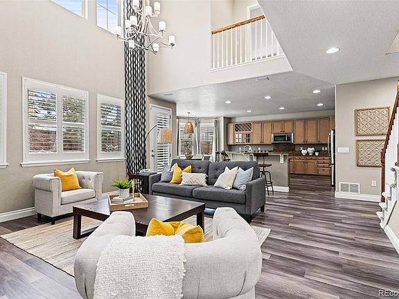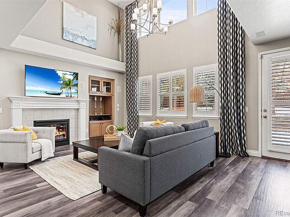 Opportunity to live in one of the most desirable areas of Highlands Ranch! Magnificent Cathedral Ceiling adorned with really impressive Chandeliers! Bright, Inviting and Open floor plan. HVAC are in perfectly working order! Impressive Entry! Surround sound system all over the home! Luxury Vinyl flooring on main floor! Plantation style Shutters! Massive fully finished lower level that leaves new owner with strong imagination on how best to utilize it. Exercise room in lower level and En Suite bathroom in Guest room in the lower level. Fully functional Wet Bar complete with Refrigerator and Microwave. Gourmet Kitchen complete with Granite Countertops! Ultra contemporary Cooktop! Stainless Steel Refrigerator and Dishwasher, complemented with a Double Oven! Pantry! Lovely Kitchen Cabinets and impressive Large Center Island! Formal Dinning Room and very cozy informal Dinning Area...