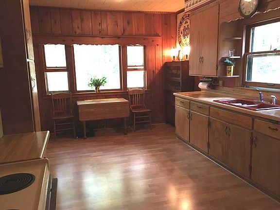 Nestled on 125' of nearly level frontage. Mann Lake is mainly state owned and very quiet. The Lake Association recently installed an aerator system in the lake. This home has been lovingly kept - it features a large kitchen / great room / living room with fieldstone fireplace, a big enclosed sun porch that faces the lake with book cases abound, in fact Tom Hollatz wrote many articles while enjoying the view from this room. Main home has 2 bedrooms and 2 baths as well as a first floor laundry. Nice lakeside deck and 2 car garage. The guest cabin is right at lakeside, and has 2BD's and 1 bath and a kitchen living room combo. This gem is so charming you can't help but ooh & ah! Gentle access to the water and view of state land.