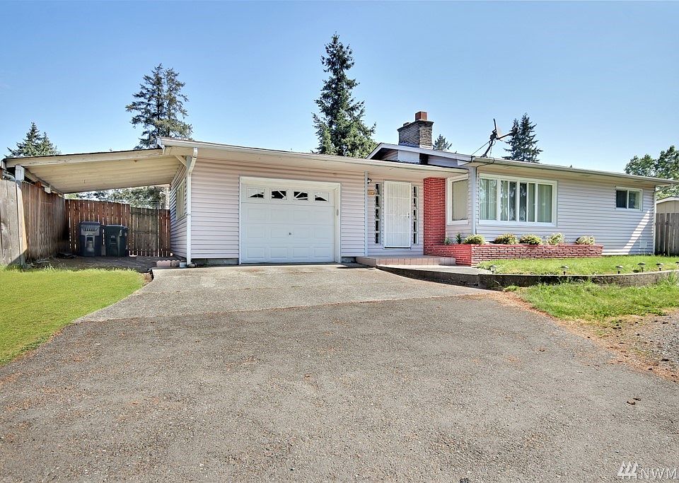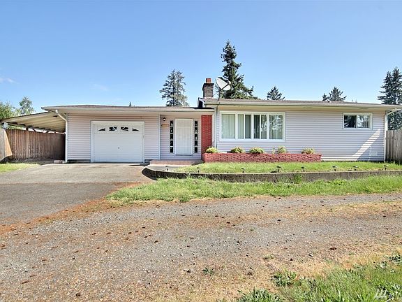 Welcome Home to this cozy 2 Bedroom, 1 full bath Rambler! Home has newer roof, newer kitchen with eating area and large living room with wood burning fireplace. Nice size Master bedroom, extra room in back can be used for crafts or storage. Newer windows, all appliances stay, large corner lot fenced, one car garage with carport. Close to JBLM, shopping, restaurants and Hwy. Nice home at a great price! Free Home Warranty included...Hurry on this one!