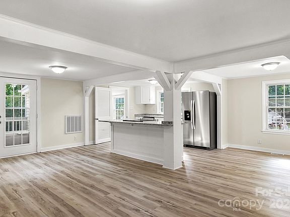 Location, location, location! This CUTE 2 bed, 1 bath home is only minutes from downtown Waxhaw with over .60 Acre lot!! Walk up the stairs onto the spacious covered front porch! From there, walk into the home onto NEW Designer Shaw LVP flooring throughout the entire home! OPEN FLOORPLAN! Kitchen is BEAUTIFUL w/white shaker cabinets, granite countertops, NEW SS Appliances and Island w/bar seating! Room for entertaining w/breakfast nook & dining area! LOTS of room for storage & pantry shelving in the HUGE Laundry Room off the kitchen! Both bedrooms are ample in size and share the one hall full bathroom w/single granite vanity and walk-in shower. Enjoy sunsets and watching for wildlife off the back deck! Lots to love!! Come see it today!