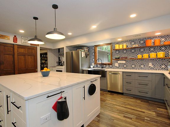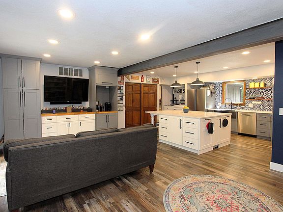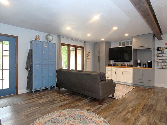 Today is your lucky day, BACK ON THE MARKET!!! This secluded, serene property offers the ultimate retreat with 2 acres of wooded privacy. Spanning over 2,500 square feet, this beautifully updated home features 4 spacious bedrooms and 2 full bathrooms. The main floor showcases modern vinyl plank flooring throughout, creating a seamless flow. The heart of the home is the expansive, open-concept kitchen, which boasts newer cabinetry, solid surface countertops, and a large quartz-topped island with built-in power and seating—perfect for casual dining or entertaining. A standout feature of the main floor is the second living area, designed with rustic charm in mind. Exposed beams line the ceiling, built-in shelving provides ample storage, and the space is bathed in natural light from an abundance of large windows. Upstairs, the master suite is a peaceful haven, complete with his-and-hers closets, providing generous storage. Step outside to enjoy the true beauty of this property: a large deck with built-in seating, perfect for dining al fresco or hosting gatherings while taking in views of the surrounding woods and wildlife. The detached, heated garage offers space for all your projects and hobbies, with an extra side room that’s perfect for storage or a workshop. This home is move-in ready with numerous updates, including a new furnace and AC in 2020, a water heater replaced in 2022, and appliances all 2 years old or newer (including a washer and dryer). New carpet was installed upstairs in 2024, and the driveway was completely resurfaced with new asphalt in 2021, with additional gravel parking for guests. Plus, Leo sewer service is accessible on Wheelock Rd, making it convenient for future connections. This property offers the perfect blend of modern comforts, rustic charm, and natural beauty—a peaceful escape for those seeking both privacy and style.