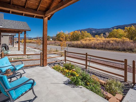 Spacious one-story home in Poncha Meadows! This three-bedroom, two-bath property sits on a corner lot in one of Poncha Springs' newest developments. The front of the home features a welcoming covered patio with stunning mountain views. A fenced area provides a convenient dog run and is easily accessible from the sidewalk leading to the front door. Inside, you’re greeted by a large living room connected to an open-concept kitchen. This expansive area has high ceilings, ample windows, and light-colored walls, creating a bright, airy feel with plenty of space to relax and entertain. Throughout the home, wide-plank luxury vinyl (LVP) flooring and tile add warmth and continuity with pine-toned hues. The kitchen includes custom cabinets with soft-close features, a pantry, and an additional pantry closet nearby for abundant storage. Off the living room are two bedrooms with a shared full bath. The spacious primary suite features a five-piece en suite with a luxurious two-person shower; it also includes a large walk-in closet, complete with a custom-built storage system for maximum organization. Adding to the home’s amenities, a two-person indoor sauna with a 6kW electric heater and LED lighting is perfect for relaxation after a day on the slopes or nearby trails. The insulated three-car garage offers ample space for toys, bikes, and more. Located just five minutes from Salida, Poncha Springs offers quick access to bike trails into town or up to Monarch Ski Resort, about 20 minutes away. Surrounded by outdoor recreation, this home is an ideal basecamp for adventure. Call us today to schedule a tour!