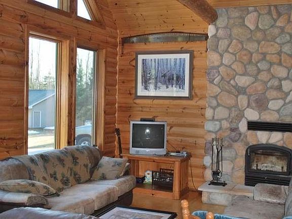 Enjoy the Northwoods in this high quality log sided 3 bedroom 2 bathroom home. Built in 2002, this home is located on 48.06 nicely wooded acres, borders Pine Creek, on ATV & snowmobile trails, minutes from the Nicolet National forest and Pine Lake. The home is 2100 finished sq. ft. and has a full basement with 8' walls. It has a 24' x 30' 2 car attached heated garage as well as an additional 26' x 32' detached garage. This home features 40 year composite shingles, floor to ceiling cultured stone wood fireplace, gas fireplace in the extra spacious 15' x 30' bedroom/ bonus room, a large 12' x 15' loft area, whirlpool tub, hardwood tile floors, A/C, and outside wood furnace. The inside of the home is completely finished with tongue and groove wood. Outside the yard features multiple apple trees.