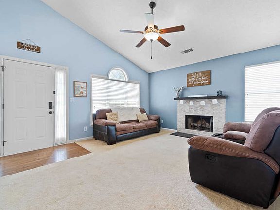 *Multiple offers have been received and the seller is reviewing all offers at this time* Conveniently located just minutes between Jonesboro, Hampton, Lovejoy, and Fayetteville, this low maintenance ranch home is move in ready. Upon approach, the exterior blue paint gives this home a peaceful beach/vacation look. Once inside, an open concept floorpan makes this home perfect for families/entertaining. All on one level, this home offers a formal living room, formal dining room, updated kitchen, mudroom/laundry, 2 guest bedrooms, guest bathroom, owners suite with ensuite bath & walk in closet, and one-car attached garage. The backyard provides a porch an level lawn for any outdoor activity. Newer roof (5 years), new paint, updated kitchen, new laminate wood flooring, new fireplace surround, freshly cleaned carpet, & stainless steel appliances. If you are looking for a low maintenance ranch home that is move in ready, this is your home!
