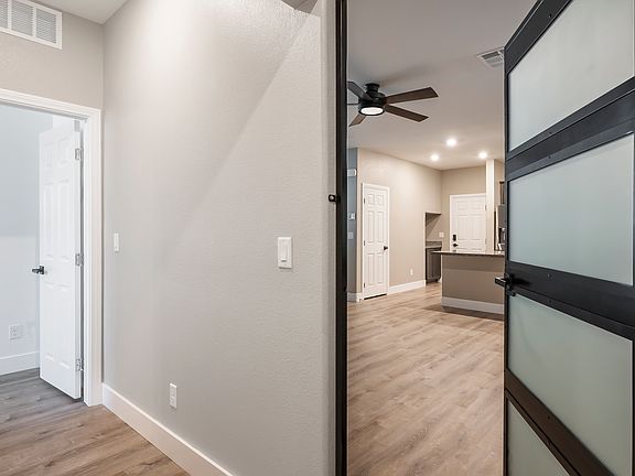 Gated neighborhoodLow-maintenance side yardOpen kitchenArtificial grassWalk-in pantryStainless steel appliancesCustom shutters