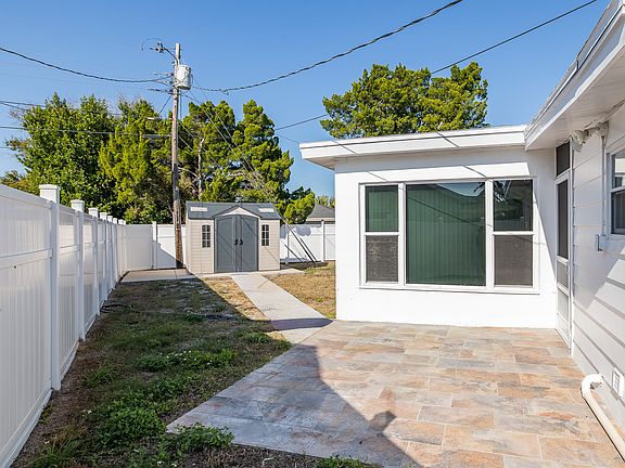This clean and convenient corner-lot home offers 2 bedrooms, 1 bathroom, a bonus room, and a well-appointed kitchen with a full set of stainless-steel Samsung appliances. The fully fenced backyard, enclosed with vinyl privacy fencing, includes an oversized shed. The laundry room sits in the fully screened side lanai, complete with pull-down blinds that allow you to see out while keeping prying eyes away. A double driveway adds to the home's many conveniences. Located just far enough from US19 to stay peaceful, it's still close to shopping, restaurants, parks, beaches, and medical centers. With professional lawn care included by the landlord, you get the best of both worlds enjoying the privacy of a single-family home without the hassle of the yard work that typically comes with it!
