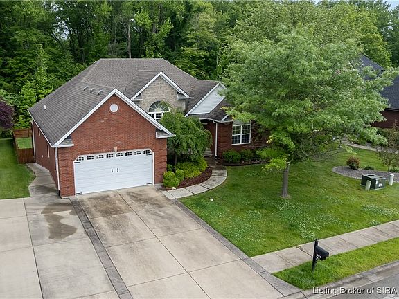 Welcome to this stunning brick ranch located in the highly sought-after Estates of Elk Run. This meticulously maintained home offers 3 spacious bedrooms, 3 full bathrooms, and a desirable split floor plan—all designed for comfort, privacy, and style. Step into the bright and open living room featuring soaring ceilings and a cozy fireplace, perfect for relaxing or entertaining. The formal dining room adds elegance for special occasions, while the sunny kitchen boasts direct access to a charming sunroom—ideal for morning coffee or casual meals. The private primary suite is a true retreat, complete with a generous walk-in closet and a luxurious en-suite bathroom featuring dual sinks, a soaking tub, and a separate walk-in shower. Two additional bedrooms and a full bathroom are situated on the opposite side of the home, offering privacy for family or guests. The walkout basement expands your living space dramatically with a huge family room, versatile flex space for a home office or gym, a full bathroom, and a utility garage for added storage or hobbies. Enjoy the outdoors in the fully fenced backyard that backs up to serene trees for extra privacy. Entertain with ease on the large upper deck or the expansive patio below—perfect for gatherings, grilling, or simply relaxing. Don't miss your chance to own this exceptional home in one of the area’s premier neighborhoods!