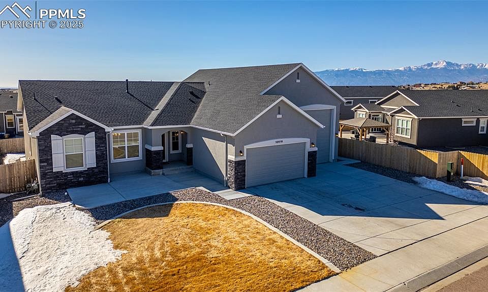 Welcome to 10619 Hillandale Way—a home that blends modern luxury, practicality, and unbeatable convenience in the heart of Paint Brush Hills! This sprawling 3,506 sq. ft. residence sits on a generous 11,382 sq. ft. lot and is designed to offer space, comfort, and functionality for today’s homeowner. The stunning kitchen is a true showpiece, featuring a gas range, top-of-the-line appliances, and sleek stone countertops that extend throughout the home. Whether you’re hosting a dinner party or enjoying a quiet morning coffee, this space is as stylish as it is practical. The open-concept living area upstairs is designed for gathering, offering a warm and inviting atmosphere perfect for entertaining. The primary suite is a retreat in itself, complete with a walk-in closet and a spa-like ensuite, making it the perfect place to unwind. With a total of four spacious bedrooms and three bathrooms, there’s room for everyone to spread out and feel at home. And for those who need serious garage space, this home delivers—a 49-foot-long RV garage gives you the ultimate parking solution, whether for your travel vehicle, boat, or up to five standard-sized cars. But the best part? The owners are including a winterized hot tub, so you can relax under the Colorado sky year-round! Beyond the home, Falcon offers incredible amenities just minutes away. King Soopers Marketplace is nearby for convenient shopping, and families will love being part of District 49, with access to highly rated public and charter schools just a short drive away. For those commuting to Peterson SFB or Schriever AFB, the drive is quick and easy—keeping your work-life balance in check. With expansive space, premium finishes, and unbeatable location, this home is a rare find in Paint Brush Hills. Schedule your showing today and experience everything this stunning home has to offer!