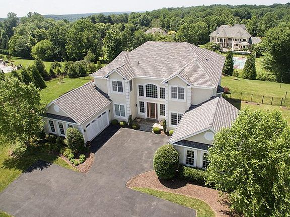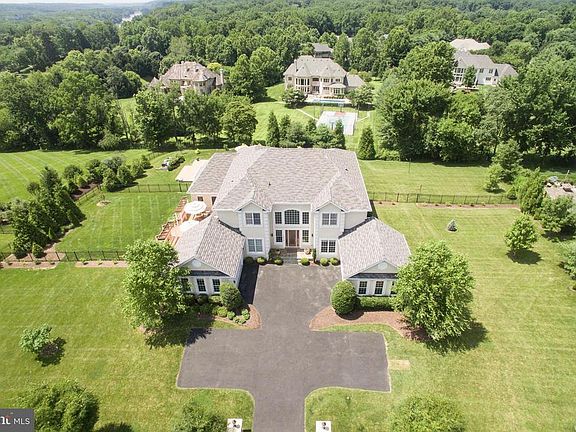 A beautiful home with stucco exterior, elegant arched window above the entry, and quoined corners. The two story foyer shows off a dramatic double curved stair and looks into the two story formal room with columned entry and large rear windows. Hard-wood floors through all living areas and tiled bathrooms. The high-end kitchen is perfectly outfitted for creativity and efficiency, with a roomy center work island and adjacent breakfast area and family room. This area offers a comfortable gathering space, with large double sided fireplace and ample windows. The fireplace also serves the adjacent conservatory/sunroom with vaulted ceiling and beautiful windows all around. The formal living room is open to the dining room completing the entertainment areas. The first floor also offers a private study, half bath, and the first floor suite. Spacious master suite includes a sitting area, two large walk-in closets finished with wood shelves, drawers and ample hanging space, and a master bath with private toilet, separate 2-person shower, Roman tub, and dual vanities. Finished basement with sound-proofed in-law 1 bedroom apt., TV area, game area and fitness room with full bath has access to back yard and the beautiful heated pool (48’x18’) plus spa and water feature. Ten foot ceilings throughout first floor and basement, and nine foot ceilings throughout second floor. Extra insulation makes the home energy efficient. Semi-custom model, The Malvern Chateau, by Toll Brothers.