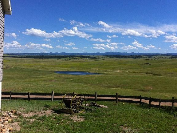 Breath taking views of the Black Hills! Approx. 84 acres, private well, large dam , views of the hills in South Dakota and Wyoming. Five bedrooms, 3 baths, Nice kitchen area with open bar, deck off dining room where you will enjoy the beautiful scenery, master bedroom and bath complete with garden tub. Spacious yard with mature trees. Very peaceful setting.