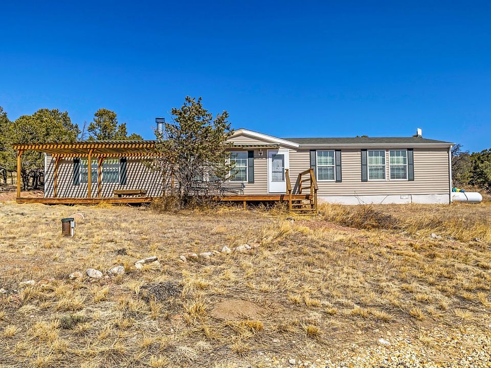 Stunning Mountain Views. This beautiful mountain home is situated just outside of the Sangre De Cristo mountain range in Southern Colorado. The house features three spacious bedrooms and two modern bathrooms with an additional room that would make a great office or 4th bedroom if needed. Upon entering the home, visitors will be greeted by a cozy living room with a stunning stone fireplace, perfect for warming up after a day enjoying the fresh mountain air. The open-floor plan seamlessly connects the living area with the dining and the fully equipped kitchen. The kitchen boasts and ample cabinet space, a large pantry and excellent views from the window above the sink. The master bedroom is spacious, large closets, and an en suite bathroom with a Jacuzzi tub and separate shower. The two additional guest bedrooms are located on the opposite side of the home, each with large closets and large windows. The home's exterior boasts a beautiful deck with stunning mountain views, perfect for soaking up the sun, enjoying a cocktail or dinner, and taking in the stunning mountain scenery. The house is situated on 2.64, perfect for relaxation and getting away from the hustle and bustle of the city.