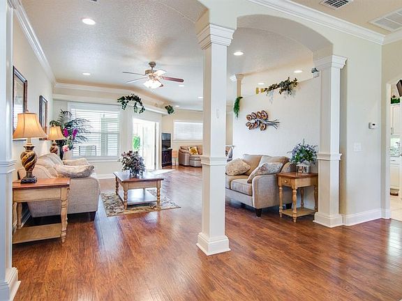 - Interior Features: Ceiling Fans(s), High Ceiling(s), Split Bedroom, Stone Counters, Walk-In Closet(s), Crown Molding, Solid Wood Cabinets, Central Vaccum, In Wall Pest System, Tray Ceiling(s)