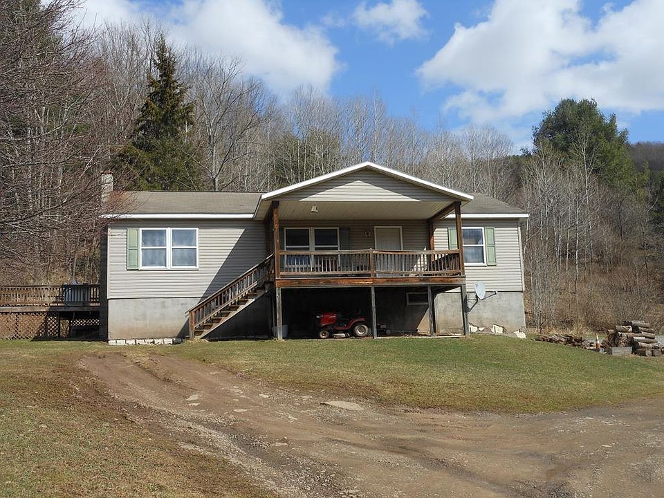 This property is in a very desirable location on the California Road in Brookfield Township, Tioga County PA!! This Modular set's on a Full Basement and offers "3" Bedrooms and "2" Baths along with the unfinished but very usable Basement. The interior is going to need a complete makeover, its been used as a rental and it shows a lot of wear and tear... Come take a look, you cant beat the location and most all the needed work is cosmetic.. Would make a great first home or get-a-way location...