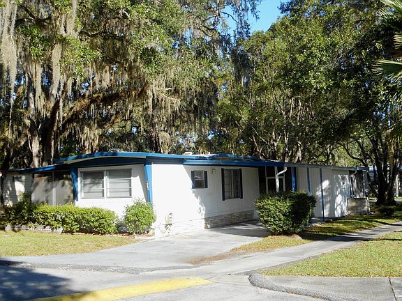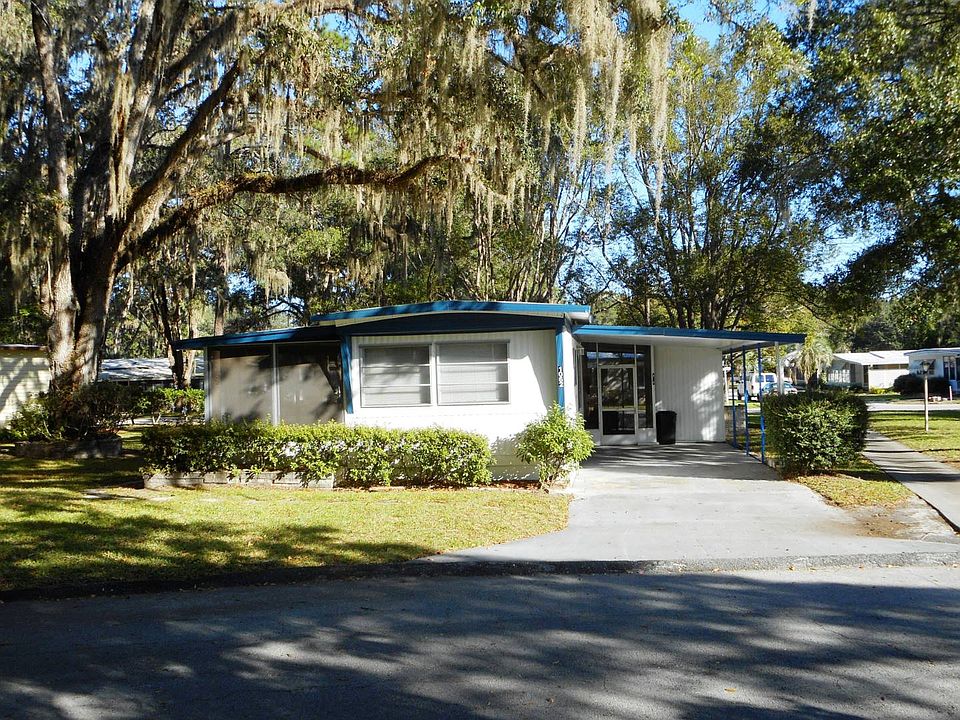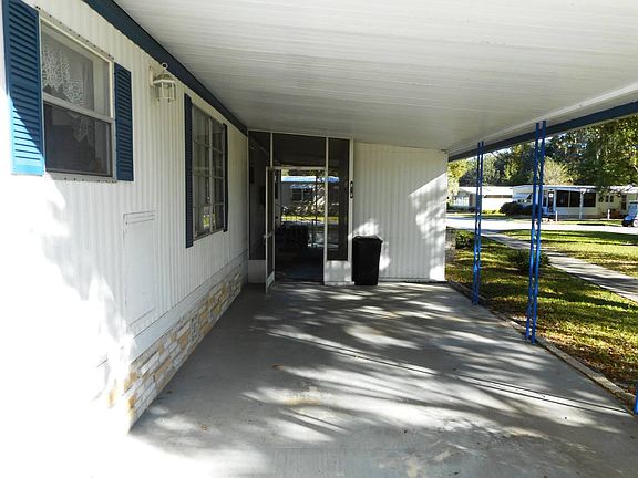 This adorable, single wide home is cute as it can be and ready for a new owner. Home offers 2 bedrooms and 1 bath with a large, newly tiled walk in shower. The kitchen has been remodeled and is bright and cheerful with sliding glass doors leading to the screened in Florida room on the side. There is another smaller screened in porch attached to the carport, so you have a peaceful place outdoors on either side of the home. There is brand new carpeting in the bedrooms and hallway. Everything in this lovely home remains. Shed has a washer/dryer hook up. Bring your own or use the laundromat, which is just across the golf cart path out your kitchen door. Located in the 55+ Community of Clover Leaf Farms. Lot rent is $531.