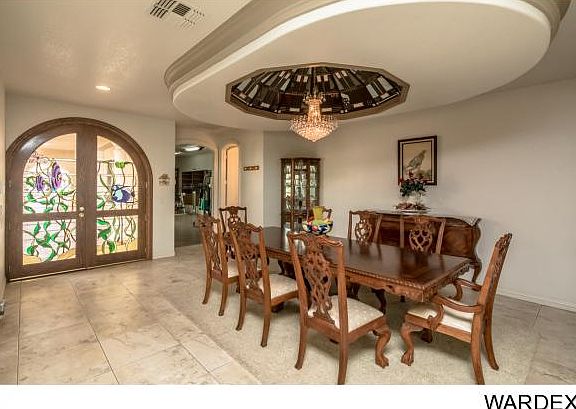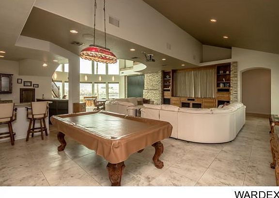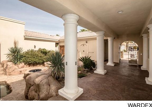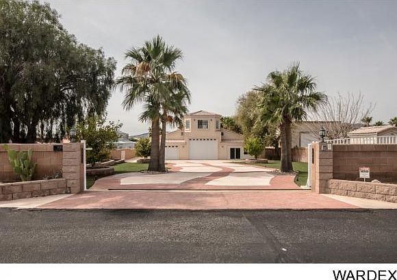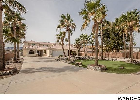 91ft on the Colorado River of majestic living.Private gated entry opens to 3400 sq ft detached drive through garage w/ upstairs apartment w/ full kitchen,bath and balcony.Mature easy care landscaped grounds leading to courtyard entry to main home w2 car garage. Home boasts 8 slabs of granite 11 slabs of marble, beautiful stained glass doors, windows and domed accent ceiling focal points.Sweeping staircase/water feature,2 story wall of windows looking out to river.Gourmet kitchen with Gaggenau double ovens/4 burner/grill/steamer/fryer station,multi sink stations/SubZero/ice maker/ views to river and balcony.Wet bar w/subzero/DW/stacked stone accents.2 outdoor kitchens one on the river w/Viking grill one by the pool w/subzero/ice maker/ro/dishwasher.All bdrs ensuite, 2 on main floor one with river views and sep gym.Master upstairs w/2 closets/elegant bath private balcony to river views.Office w/balcony river views,craft room w/dumb waiter and 1/2 ba .Private launch w/ramp from 44x22.9 garage,dock and 91'of sandy beach.Horitculture rm w/9 SunSystem Sunlights water bibs raised planting beds evap cool plumbed.Pool/spa/waterfall/2 saunas/2 showers/firepit.Truely an oasis in the desert.
