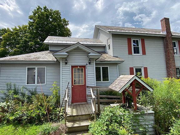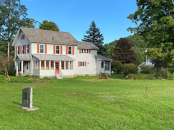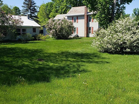 Let your imagination run loose! Endless opportunities await with this roomy colonial on an oversized corner lot. A sunny eat-in kitchen addition paired with a generous formal dining room set the tone for having options. The large living room with original wood flooring and stairway hark back to the elegance and history of this home. Upstairs bedrooms and a full bath comprise private space. Downstairs screened porches on the side and back serve to bring the outdoors in. The 1.37 acre lot with fruit trees and mature plantings stretching out large and level and provides room for for gardens, animals, or play space before dropping down toward the Poultney River. An enormous 4 bay garage with a workshop and storage above provides ample room for just about anything. This special property offers countless possibilities coupled with the convenience of being close to the village, shopping, and schools, and proximity to the fabulous Slate Valley Trail system for biking and hiking.