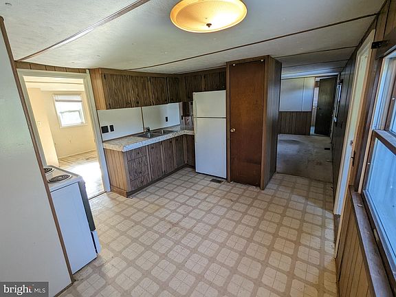 Single floor living on .45 acre lot! Green Lane Park is a short distance away. Live walking distance from library, restaruants and grocery store. This 2 bedroom home has an eat in kitchen, office and laundry room. There is 1 bathroom and an additonal stall shower. Enjoy the covered back deck and back yard. There are two sheds and one garage. This is a mobile home on a block foundation with a crawl space. Being sold as is.