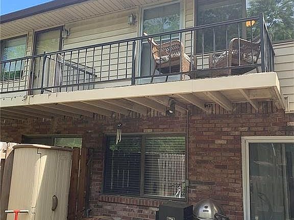 Great opportunity to own an income producing condo in Greenwood Trails! Low maintenance property- hoa takes care of lawn care and building's exterior. This unit has 2 bedrooms on upper level, good size living room, open to the dining space. Sliding doors lead out to private back patio, enclosed by privacy fence. Master has access to private balcony that looks out over the back patio and yard. Laundry room on main level. Comes with 2 assigned parking spaces, one space is covered.