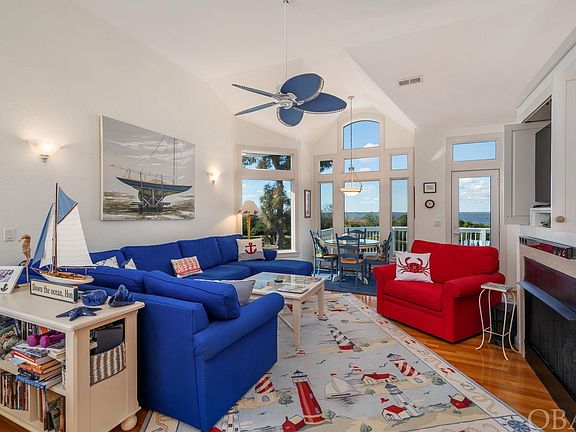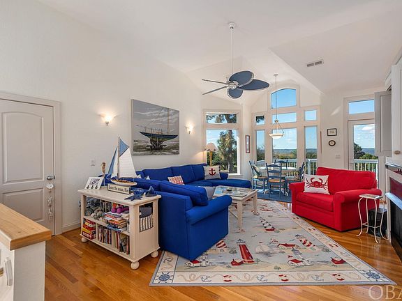 This privately owned sound side property is a 6-bedroom, 6.5-bath retreat nestled in Corolla Light, an amenity-rich ocean-to-sound community. What sets this home apart are the captivating panoramic views of the Currituck Sound that create an atmosphere of tranquility and openness throughout. The top level of this reverse floor plan house is designed to embrace these extraordinary views from each room. It boasts an open flow featuring a bright living area with fireplace, two dining areas, and a sleek white kitchen, Silestone counters and breakfast bar/prep area, along with hardwood floors. On this upper level you can also find an expansive sun deck offering the opportunity to enjoy the breathtaking sound vistas while relaxing or dining al fresco. The spacious primary en suite bedroom captures the essence of the stunning sound views while also featuring a fireplace and private bath creating a true retreat. On the mid level, the emphasis on panoramic sound views and brightness continues. Four more en suite bedrooms provide spacious and comfortable accommodations, with two of them offering captivating sound views and easy access to an expanse of screened porch. This screened porch isn’t just decorative; it extends the living space, allowing you to enjoy the view outdoors while sheltered from the elements. An open den/office on this level also boasts more sound views, natural light, and screened porch access. The ground level features the remaining bedroom and full hall bath, the laundry, more hardwood floors, and a bright game room with kitchenette opening to a covered porch adjacent to the private pool. The outdoor space not only provides an opportunity for relaxation and recreation but also provides a nice shady area to enjoy lunch by the pool. This comfortable, pristine home offers awe inspiring views and a picturesque setting with spaces for outdoor living that harmonize with the surrounding landscape. The Corolla Light community enhances the experience with its array of amenities, including an indoor pool and sports complex, outdoor pools, a trolley service for convenience, and an oceanfront grill. This privately owned second home getaway has been meticulously maintained and is free from the wear and tear associated with rental properties. This spacious and inviting sound side retreat is ready for the next discerning buyer to fully enjoy the panoramic sound views and abundant living spaces it has to offer.