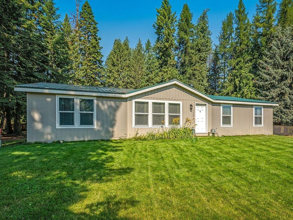 Discover the charm of this custom-designed 3-bed, 2-bath manufactured home. The home features vaulted ceilings and an open floor plan connecting the living, dining, and kitchen areas. Enjoy cooking in the kitchen with ample counter space, beautiful dark cabinets, accented tile backsplash, and a spacious island. The bedrooms are generously sized with large windows, while the master suite boasts an oversized walk-in closet, dual vanity sinks, a large soaking tub, and a custom tile shower. The large laundry room doubles as a mudroom with a utility sink and additional storage Step outside to a big backyard with a partially covered deck, perfect for entertaining. The detached one-car garage includes workbenches and a pellet stove. Conveniently located near schools, grocery stores, and the Pend Oreille River; with Priest Lake, Sandpoint, Coeur d'Alene, and Spokane airport just a short drive away. This home offers comfort, convenience, and a perfect space for making lasting memories.