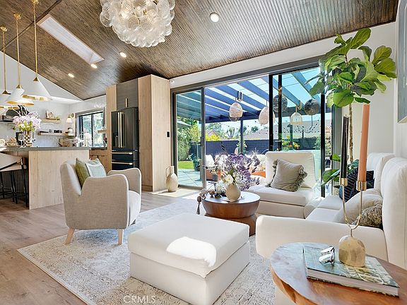 Motivated Seller! Price Improvement on this North Tustin Beauty!!!Huntridge underwent an extensive remodeling process that transformed both its functionality and design. Kitchen with new cabinets, sinks, fridges, and ranges. Essential systems like HVAC, plumbing, electrical, and gas services were all replaced. The home features high-end upgrades including Z-Line appliances, Visual Comfort light fixtures, Zellige Moroccan handmade tiles, luxury vinyl floor planks, and porcelain ribbon tiles. Modern conveniences like a Navien Tankless water heater, Nest Thermostat Control, and Blink Security System make this home truly 'one-of-a-kind'. It's also cable-ready. Both the exterior and interior embrace a moody and romantic aesthetic with prevalent black hues, a white oak portico and front door set a welcoming tone. Upon entering, you're immediately captivated by a dramatic 15-ft dual-sided fireplace that divides the living and kitchen/family room areas. A 15-ft stained wood paneled ceiling in the kitchen/family room areas adds warmth, sophistication, and architectural interest. Outside, a beautiful garden complements the home's charm, equipped with sprinkler and dripping systems.It offers two primary suites, two en-suites, one powder bath, and two secondary bedrooms. A two-car garage completes the property. The design seamlessly blends timeless and classic elements with transitional and modern features, catering to the lifestyle of each homeowner. Make this magical place your forever home!