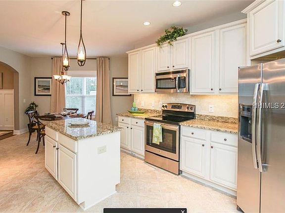 Oh Amelia! With the rounded archways, two-story foyer, and oversized owner's suite, this is a fantastic layout. Even the pass-through from the kitchen to family room adds to the charming character. Additional features include a 5'spa-like shower, large walk-in pantry, soft-close cabinets with crown molding, quartz counters and island, 4' garage extension, service door and an addt'l 12 x 12 rear patio. Enjoy the sunsets from the Carolina room watching the Egrets dance above the lagoon in your backyard, surrounded by oak trees with Spanish moss. Tucked in nature, but around the corner from everything Bluffton. *Photos are of model*