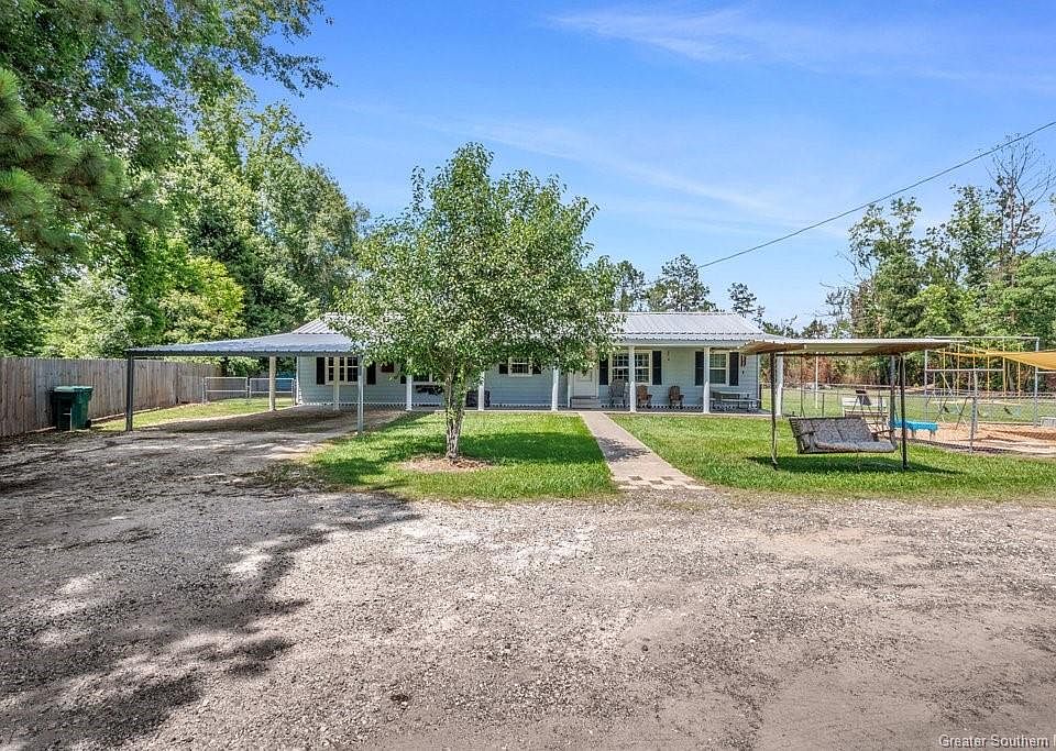 Welcome to this serene 3 bedroom, 2 bath home nestled on +/- 3 acres in Sulphur, LA. This home features a split bedroom concept and an open floor plan along with a nice bonus room / sunroom. You can find upgrades like stainless steel appliances and granite countertops in the kitchen, new flooring, a large primary suite with a walk-in closet and shower. The roof is less than 2 years old and installed after 2020 hurricanes, along with a new HVAC exterior unit. Outside you can find a very nice 24x42 shop with electricity and a concrete slab that also has 2 lien-to's off of it. There is a detached mother-in-law suite that would also make the perfect office! Amongst the property are some fruit trees, a stocked fishing pond, a playground, and so much more! There is plenty of room to park vehicles! There is an attached carport to the home and another attached to the shop. Sitting in Flood Zone X, this home does NOT typically require flood insurance. This rural haven is ideally located, offering the peace and seclusion of country living while still being within a convenient distance to essential amenities in town. This property presents endless possibilities for outdoor activities, gardening, and creating your dream lifestyle.