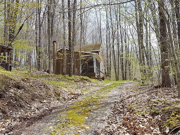 Partly secluded, has access from N. Brookland Rd./rt 449. Mouth of driveway is a shared access with lower camp, no maintenance agreement. }{There is additional acreage that can be purchased across the road 4.810 acres or the cabin + acreage across the road = 12.26acres for 109,900.00.}{ This is an older hunting camp and being sold, "AS IS IN ITS PRESENT CONDITION" with 7.45 acres/ Beautiful views year round for your camping, hunting, hiking, biking, fishing...The list goes on. Elec, verizon land line, well, septic 3 bedroom with bunks and most furnishings are included so no need to pack up the house for a stay.