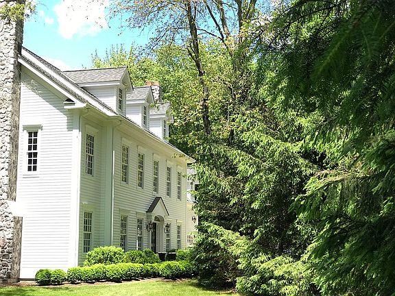 OVERVIEW Acquired by its current property owners in 2000 this wooded, flat 2.5 acres site was meticulously transformed from a neglected, aged Saltbox structure into an elegant North Georgian cedar clapboard by renowned, visionary (late) architect Kathleen Sullivan Foster AIA, partnered with developer Edward DuBlois and their home renovation dream team on manicured, landscaped grounds. This 3-4 Bedroom period home was rebuilt from its foundation with an updated open-floor plan after their multi-year project was completed in 2006. PROPERTY Property is surrounded by stone walls with fresh water pond, mature oaks, tulip, maple arbors, apple and spruce trees with private hill views that access the bridle paths of the Bedford Riding Lanes Association (BRLA), abutting NYSEG conservation easement within the NYC Reservoir Watershed region for maximum privacy, creating an ancillary nature preserve for great blue herons, ducks, and other marsh and wetland waterfowl. INTERIORS . KITCHEN constructed with professional/commercial appliances, custom cabinetry, custom-bespoke Italianate white marble by Alise Marble with custom cut granite countertops, farmhouse sink, dual brass chandeliers . First Floor STUDY 25 ft x 30 ft has built-in bookshelves, built-in cabinets, wood burning fireplace . BUTLER’S PANTRY offers built-in plumbing and pre-wiring for ice-maker or equivalent appliances for maximum entertaining and hosting . LIVING ROOM 40 ft x 50 ft open-floor space with custom six-ft wood panel mantel, black granite, wood-burning fireplace with stone chimney, brass chandelier suspended from a 22-ft cathedral ceiling . SUN ROOM 20 ft x 20 ft with wall-to-wall, floor-to-ceiling windows and french doors with 270-degree rear property views . MASTER BEDROOM Suite is 1,200 sq. ft end-to-end with private, walk-out 20-ft x 20-ft cedar wood terrace with adjacent, custom whole room 15-ft x 15-ft walk-in-closet, pre-wired for mini-bar with traditional porcelain claw foot Perrin & Rowe UK bath and faucet fixtures . BONUS ROOM 20-ft x 20-ft with two dormer windows with 180-degree northern and southern exposures . Second Floor LIBRARY LOFT 20ft x 3ft loft with built-in bookshelves surrounded by southern exposures for maximum natural light . LOFT SPACE is 1,000 sq. ft finished with 360’ degree front and rear, N-S-W-E exposures for maximum light and property views . GUEST ROOM 30 ft x 25 ft en-suite with wood burning fireplace . Second Floor LAUNDRY . Extensive, custom moulding, built-in bookshelves and oak hardwood floors throughout EXTERIOR . Attached two-car GARAGE with Belgian-block, pebble driveway. Finished cedar clapboard for interior breezeway drive through . 800 sq ft flat, ground-level outdoor, fieldstone TERRACE surrounded by manicured rows of English boxwood . Enclosed deer-proof 20-ft x 8-ft herb garden LANDSCAPING . Solar-powered landscaping lights with Walpole gated entry, light poles with traditional New England lantern fixtures, tool shed, outdoor fieldstone trash enclosure, solar-illuminated fieldstone pathways with multi-rows of aged English boxwood . Spruce tree hedge walls used as natural green privacy screens EXTRAS . Auto-standby whole house 17kW GENERATOR. . Culligan Platinum Series Water conditioner and filters. . Enhanced FiOs 5G technology with network boosters and separate cellular tower boost . Advanced SECURITY, ALARM, FIRE, CARBON MONOXIDE, HEAT DETECTION SYSTEM TOWN OF BEDFORD . Property zoned exclusively for the Town of Bedford resident parking permit for either Bedford Hills (6 miles) or Katonah (5 miles) MTA Metro North Commuter Rail. . Prime lot. . Two miles to Bedford Village Green, listed among National Register of Historic Places . Bedford Town Historian states that the site was once a gatehouse farm in early 18th century (annexed parcel from larger estate) following a partial land division of the site for an Episocopal Chapel at the turn of the late 17th century.