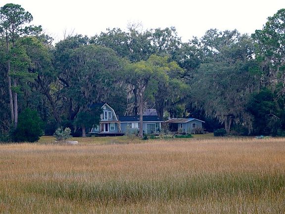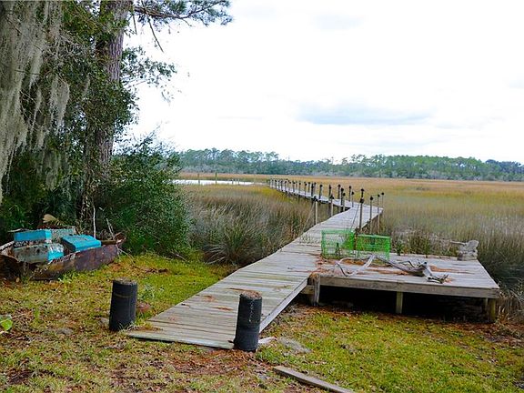 Enjoy sunset views from one of the decks or your own PRIVATE dock! Features a cozy and functional setup with 2 bedrooms and 2 full baths with plenty of space on the sun porch for overflow guests. Large kitchen area with a wood burning stove to warm things up after a day on the water. Just a 10 min boat ride to Sapelo Sound & beaches. River views from the living room with french doors leading to a covered deck. Spacious yard with a private well and septic. Large boat shed/garage features a separate septic already in place. If wanted- this could be easily converted into a garage apartment. Located in the quiet community of White Chimney and only steps away from the public boat ramp and downtown Shellman Bluff. 35 min to Brunswick or Hinesville, 1 hour to SAV or JAX airports. Interior could use a little TLC upstairs but for the price, this would make an awesome remodel project. Potential VRBO property for extra income. Float damage after Irma- DNR dock renovation permit already in place.
