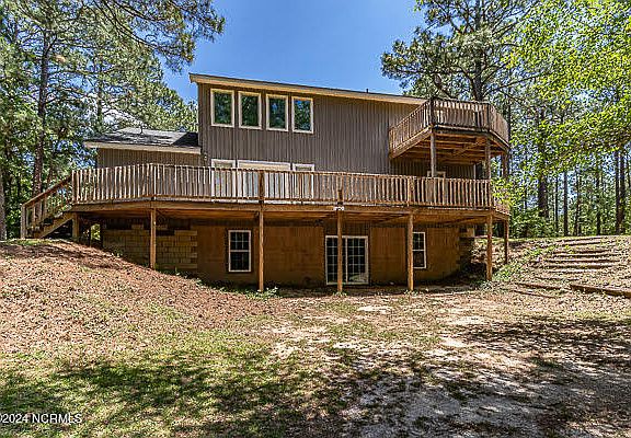 Secluded, peaceful and quiet. Welcome to this wonderful home on Sleepy Creek Rd. 1.22 acres located off the road, accessed by a paved easement, with a spring fed pond at the rear of the property. The exterior of the home has beautiful cypress siding, large rear deck plus small 2nd floor deck accessed from the bedroom. Over 2,200 square feet of living area with 3 bedrooms and 2 baths. Large family room with laminate flooring and 2 story ceiling open the the 2nd floor bonus area. Formal dining room with parquet flooring. There 2 bedrooms and 1 bath on the first floor and 1 bedroom, 1 bath and bonus area on the 2nd floor. 1,361 square foot basement with 1,010 square feet partially finished with 351 square feet unfinished utility area. The roof was replaced 2-3 years ago (the Heirs not sure exact date), HVAC system and water heater replaced in 2024.