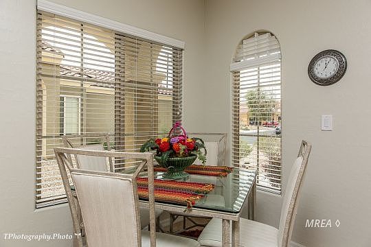 Enjoy the stunning, panoramic tri-state mountain and valley views from both inside and outside of this beautiful home that sits on a fabulous elevated lot. The eastern orientation of this lot provides you with wonderful views of the morning sunrise, full moon rises, and reverse sunsets off the mountains. The extended paver patio provides loads of room for outside entertaining. Plenty of windows make this Daisy model light and bright. Enjoy the upgrades found throughout this home including extended tile flooring, natural maple cabinets with pull-out shelves, granite counter tops, ceiling fans, and more. The owner's suite features a spacious walk-in closet with plenty of storage room. The second bedroom, with a built-in Murphy bed has a nearby full bath. The SID IS PAID IN FULL. Come move in today and begin enjoying all of the amenities Sun City has to offer.