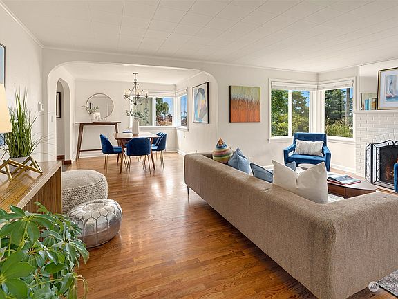 Spacious and charming 1942 West Seattle home on a quarter acre park-like sanctuary close to the water. Chef's kitchen complete with stainless appliances, 2 full sized ovens, granite counters, and 2nd prep sink opens to covered patio overlooking a sun-drenched backyard. Beautiful living room w/fireplace and hardwood floors flows to dining room - both w/ partial sound views. Entertain indoors or out. Additional family/movie room on lower has midcentury vintage bar still in tact. Luxurious steam shower and updated second bath. Plenty of space to work fr home w/office nooks/art studio. Fully fenced backyard w/detached garage. Close to parks, 20 min to downtown, easy access to Sea Tac. Ideal balance of tranquility and convenience. Welcome home!