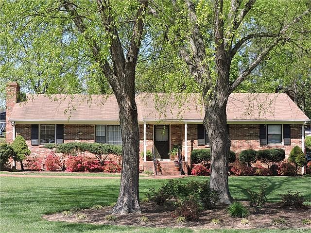 4 sides brick ranch home, 3 bedrooms, 2 full baths. Living room, dining room, hallway and all bedrooms display real wood floors. Large family room with wood-burning fireplace, nice sized living room with large picture window allows lots of natural light. Eat-in kitchen, dining room with crown and chair molding - a door to the patio for outdoor entertaining. Welcoming flow in the living areas. Kitchen and laundry room new flooring installed last week. All bedrooms with ceiling fans, 2 hall linen closets. Home is neutral, sparkles and ready to move in. Over half an acre of mature landscaping, the azaleas were beautiful, move in just in time to enjoy the knock-out roses!
