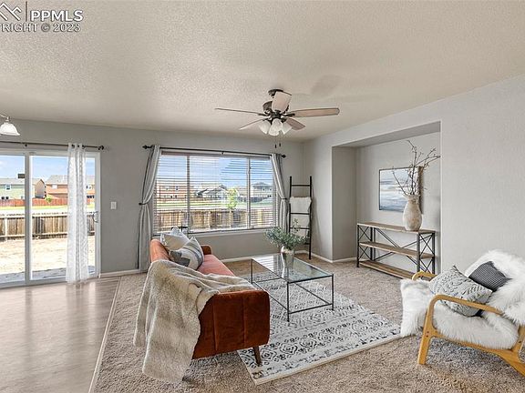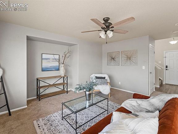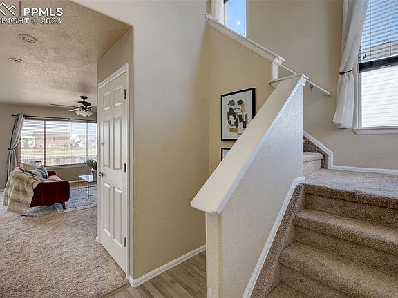 Charming 3 bedroom and 2.5 bathroom home in Lorson Ranch! The soaring 2-story ceilings & large windows greet you as you enter. The main level has an open concept with an ample amount of storage space. The living room is open to the dining area & kitchen. The kitchen has wonderful lighting with plenty of cabinet & counter space and a pantry. The Primary Suite, two additional bedrooms, a full additional bathroom, and laundry room are conveniently located on the upper level. The spacious Primary bedroom has an attached bathroom, equipped with a soaking tub, dual sinks, and walk-in closet. One of the secondary bedrooms is attached to the second bathroom as well. The unfinished basement is perfect for future expansion, gym, or storage. From the dining room you can walk out to the fully fenced backyard where you'll enjoy no rear neighbors and mountain views! The water heater and kitchen refrigerator were recently replaced. There is AC to enjoy in the summer as well! Close to Fort Carson, Peterson, and Schriever; and within walking distance to community parks and schools! NO HOA!