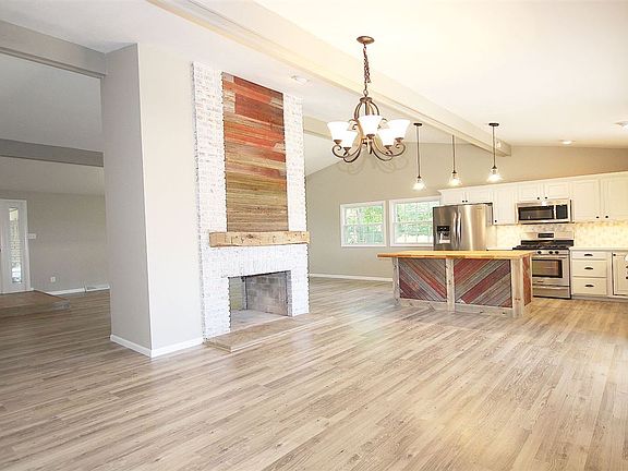 Remodeled top to bottom in popular Del-Lo-Me! Light and bright open floor plan with new stainless kitchen appliances, quartz counters, tile backsplash, see-through fireplace with reclaimed barn wood facing and barn beam mantels, new flooring throughout, fresh paint, new garage door opener, new water heater, and so much more! Fenced back yard has two metal storage sheds and a large open deck for entertaining. Side yard has a separate deck surrounded by trees and perennials for a more serene relaxing feel. Finished basement adds a second fireplace and plenty of storage. New high efficiency furnace with built-in humidifier and tons of new LED lighting throughout make this home very efficient!! Taxes with exemptions would be approximately $1419 per year. Office space added