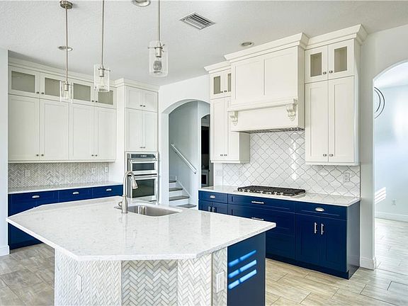 • Interior Features: Ceiling Fans(s), Master Bedroom Downstairs, Crown Molding, Walk-In Closet(s), Open Floorplan, Solid Surface Counters, Solid Wood Cabinets, Kitchen/Family Room Combo, Coffered Ceiling(s)