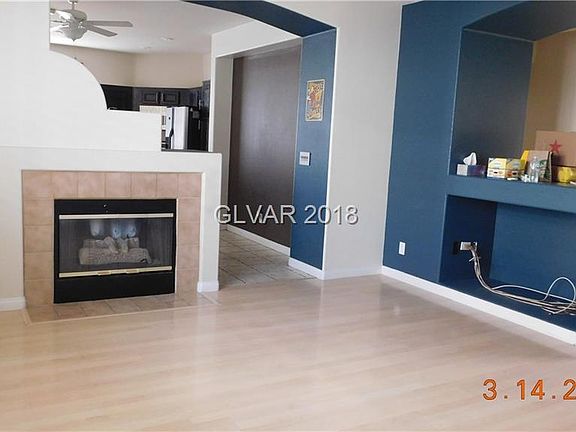 Nice single story home in the heart of Summerlin. Vaulted ceilings, neutral paint throughout, wood laminate flooring and tile throughout, Shutters, kitchen has black cabinets w/ handles, tile counter and floor, island with breakfast bar, stainless appliances. Refrigerator, washer and dryer included. Master has walk in closet and another closet. Backyard has lawn and patio. Excellent location across the street from park and playground!