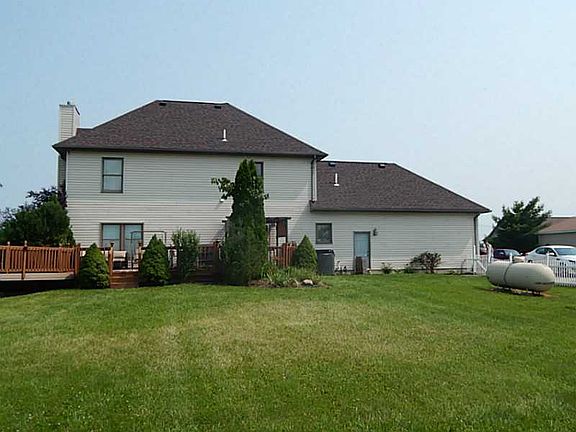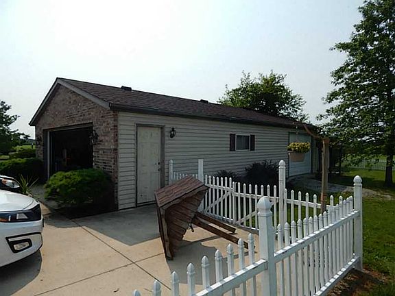 Country living at it's finest!! Enjoy this 3 bed 3 bath home with full finished basement. Large living room with gas fireplace. Dining room with coffer ceiling and a view of the stocked pond. Kitchen offers newer appliances and a breakfast nook that leads out to the large deck & above ground pool. Large 4 car detached garage for any man's dream workshop area. Storage shed inside the fenced in back yard. Windows replaced 7 years ago. New roof in Sept.'14, Water heater is 2 yrs old, furnace is 11/2 years old, Central air 1 month old. 1 piece spouting on the outside. Men grab your fishing pole and enjoy the Catfish, Blue gill, Carp and Bass in your large front yard pond. Kids can enjoy the heated pool. Level billing heat is $90/mo, and Electric runs around $120/mo. Call today for your private showing 937-489-0320