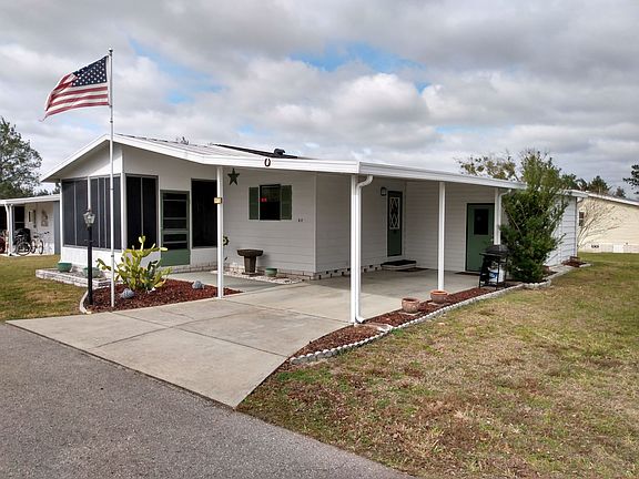 Welcome to Oak Bend...The Best Kept Secret In Central Florida! This beautifully decorated, newly listed, Fully Furnished home has a very warm cottage feel. Rich laminate flooring throughout, large open kitchen with bar. Wonderful and cozy enclosed front lanai adding to your square footage. Perfect space to enjoy your morning coffee. Very spacious master suite and bath. Home has been kept immaculate ! Upgraded master and guest baths. New shingle roof. Also, a working shed you would not believe !! Priced to sell !! Call me today and make an offer Oak Bend is situated in a rural setting nestled among picturesque horse farms like Lexington Downs, riding trails at Cactus Jacks Riding Trails https://floridahorseriding.com/home/ and Florida Horse Park nearby with easy access to major highways, malls, grocery stores and hospitals and physicians offices. There are 234 homes in this age qualified community where people feel comfortable walking their pets, riding their bicycles and visiting with friendly neighbors. The Clubhouse is very active with many social activities. Oak Bend also has a heated swimming pool, library, billiard room, shuffleboard, horseshoe pits and much more. Oak Bend is an age qualified community, $558 HOA a month which includes lot rent, lawn care, water, bi weekly trash and recycling curb pickup and all the many amenities Oak Bend has to offer. Welcome Home!