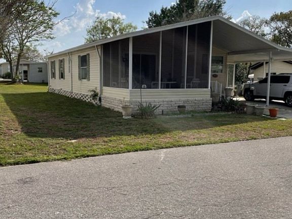 1999 Jacobson features 2 bedrooms, 2 bathrooms, 2 Lanai's, and an Energy Efficient home in this Active 55+ Community. This home also features some recent upgrades; new SS Kitchen appliances, AC, and Laminate flooring installed 2 yrs ago. This home has 6" walls (rather than the usual 4"), R19 insulation in walls and R40 in ceilings. 35 yr architectural shingles, extra-large side "Enclosed" Lanai and workshop/storage in back and a front Screened lanai. Enjoy entertaining guests on either of these 2 Lanais or watch the golf cart parades as they go by or a cup of coffee or cocktails with friends and neighbors. The Lavendar skies are so beautiful here too. Another great feature is the Extra parking area. It's nice to have room for your car and golf cart without having to move things around. OakBend 55+ community has a lot to offer; Clubhouse, Pool, Billard's room, Exercise room, Library, Shuffleboard and National Horseshoes Tournament site. Lot rent includes all of these amenities and lawn care. Come enjoy all that this community has to offer.