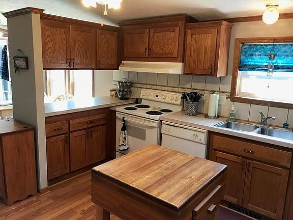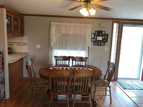 Sweet modular in Wakarusa on almost 45 acres. Completely finished walkout basement with two extra rooms, closets, full bathroom, and a kitchenette. Basement also has large rec room and family room. A wood burning stove is outside and can be used to heat basement. Very pretty sun room looking out on acreage. Has two out buildings, a pond, fenced acreage, ready to be someones new farm!
