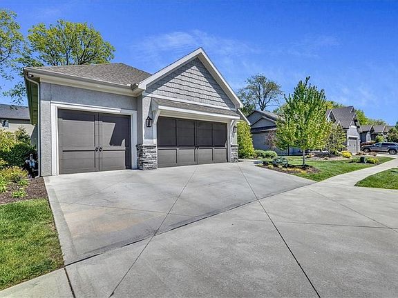 Welcome to your dream home! Built in 2019 you will be surprised to find many upgrades including hardwood floors through, new carpet down the oversized stairs. You will enjoy a home filled with chic updated finishes and fixtures throughout. As you walk through the front door and into the entryway, an open floor plan awaits you and provides for a beautiful view into the back yard gardens. A statement stone-covered fireplace covers the wall all the way up to reach the top of the 14' ceilings. This living room is connected to the window lined dining room and flows into the kitchen additional bar seating at the oversized island. Mechanical window blinds add to the charm and unique features in the home. The stainless-steel appliances match the silver light fixtures that illuminate the amount of kitchen cabinet storage that is available. Just off of the kitchen you walk out to the covered outdoor patio with another statement stone fireplace that mirrors the design in the living room including outdoor entertainment area. The main level primary suite is what dreams are made of, with a high coffered ceiling, large windows and ensuite bathroom with a gorgeous soaker tub, separate shower and double vanity. As you move from there, the oversized closet has windows and plenty of shelf space. Bonus, it is connected to the main level laundry room. The main level has a second bedroom and bathroom as well. As you move down to the lower level enjoy large wet bar and bar seating, double living spaces with full egress windows, and two more bedrooms and one and half more bathrooms. Not to mention the spacious three car garage with new epoxy floor refinish. Each space in this beautiful home feels like there’s a designer touch with the upgraded fixtures and flooring. Run don’t walk to see this beautiful reverse 1.5 story in the coveted Melrose Reserve neighborhood in Overland Park!