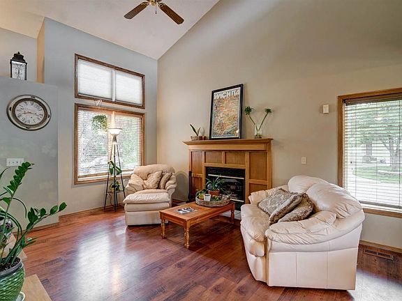Very convenient west-side location for this 1 1/2-story 4 BR 3 BA 2-Car Garage home, just west of 13th & Maize Rd, sitting in a nice neighborhood. Open concept living space includes vaulted ceilings + a gas Fireplace in the Living Room and wood laminate floors in Living Room, Dining Room & Kitchen. The kitchen is outfitted with a pantry, eating bar, lovely black composite sink and dark faucet. The Black Refrigerator, range and Dishwasher stay with the home. Main floor Master Bedroom sports a walk-in closet and connects to Updated Hall Bath with tile floor, hard surface countertop and tub/shower combo. On the upper level are Two additional bedrooms(one is currently used as a library), another walk-in closet and a full bath, all with fresh paint and new carpet. In the finished basement, you will find a large Family Room, 4th Bedroom, Remodeled 3rd Full Bath and the laundry area. Nice patio, wood privacy fence. Some new windows and siding, New Patio door, new Air Conditioner, newer Roof. Just beyond the backyard fence is a nice public green space & gazebo. Dont miss out on this family friendly home - Call to schedule your private showing today!!