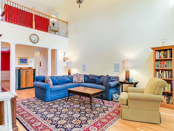 Surprising and delightful floor plan of this 4-bedroom transitional home features impressive foyer with dramatic curved staircase and light-filled, two-story great room with fireplace and access to the terrace. First floor master bedroom with luxurious bath plus another first floor bedroom/full bath! Spacious loft area overlooks the great room and provides space for a nice home office! Huge kitchen with granite counters, Bosch appliances, tile floor and backsplash and casual dining area! Professionally landscaped yard features brick paver patio with pergola, garden shed, and perennial gardens!