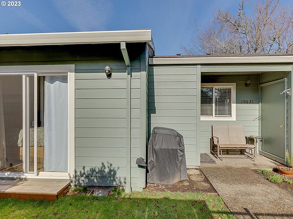 Great 2 bed, 2 bath, light and bright attached home on a corner lot in the heart of Tigard. Open kitchen concept, large windows, vaulted ceilings, sunken living room with electric fireplace. Sliding door to fenced backyard patio. Primary Bedroom with en suite, double closets with overhead lights, access to backyard patio. Additional bedroom with personal access to the private front courtyard with fencing. 2 car detached garage 2/25 OPEN HOUSE Canceled due to Weather.