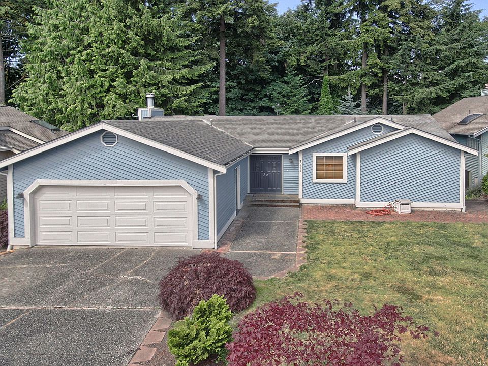 Lovely home in Harbour Pointe! Shy 2,000 asf daylight rambler on a .23 acre greenbelt lot. Main level features: double door entry; spacious kitchen; dining room; living room with gas fireplace & built-in shelves; guest bath; master suite with private bath. Lower level features: 2 bedrooms, full bath/laundry room, family room with gas fireplace. Huge deck, patio, garden shed, 2-car garage with workshop/storage area. Great location; close to schools, golf course, YMCA & library. Minutes to Boeing!